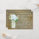 Bröllopsfestens inbjudningskort för par som matchar bröllopsinbjudan i samma namn. FÄRGPALETT: rosakorall rosa, grå, brun och grön DESIGNKOLLEKTION: Denna lantliga bröllopsinbjudan i rustik stil skapades från akvarellkonst för hand målad av Audrey Jeanne Roberts. Glasburken målades varsamt i en mjuk akvablågrön färg och fylldes med en bukett av blå hortensior och vita vallmor i en vacker mjuk pastellblå färg som plockades för hand i Audrey Jeannes egen trädgård och målades för hand. Vintage-inspirerade syltburkar är en mycket trendig designstil för boho-chic bröllop. Bakgrunden är ett grått väderbitet staket av tallbrädor som är åldrat och slitit för att förmedla känslan av en utomhusbröllop i ladug