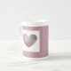 Pärlemorfärg och kräm- hjärtakopp (lilor) benporslin mugg