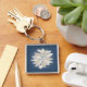 Pärlor av vit sten fyrkantig silverfärgad nyckelring