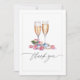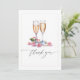 Uttryck din tacksamhet med stil med detta bröllopsfest-kort "Pearls, Petals and Prosecco". Med en elegant akvarelldesign med champagneglas, ömtåliga pärlor och rosenblad är detta kort det perfekta sättet att tacka dina gäster för att de firade din speciella dag. Ett chic och tidlöst tillägg till din bröllopspapper.