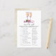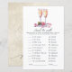 Ta med gästerna på en kulturell resa med detta "Runt om i världen"-spelkort för bröllopsdusch! Med eleganta proseccoglas och blomsterdekorationer utmanar detta spel gästerna att matcha "Jag älskar dig" på olika språk med rätt länder. Ett roligt och interaktivt sätt att fira kärlek och göra pärlor och prosecco-bröllopsduschen oförglömlig. Helt anpassningsbart för att passa din evenemangstema.
