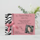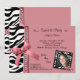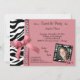 Det rosa bandet och pärlor med svartvit zebra ränder dekorerar denna samtidaa partyinbjudan. Upload ditt egna foto till den skraj sebraramen vidare för att personifiera looken. Det finns överflöd av anpassadetext på denna moderiktiga inbjudan att tillfoga din information om partyet. Vi har också denna design i olika färger. Att koordinera färgar på baksidaen av denna flott inbjudan avslutar looken!
