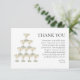 Vi presenterar våra exklusiva "Pärlor och Prosecco" Tacksamhetskort, ett hjärtligt sätt att uttrycka din tacksamhet till dina gäster efter din brudshower, förlovningsfest eller bröllop. Dessa kort har samma eteriska akvarellteckning av ett champagneglas dekorerat med ömtåliga pärlor som våra andra "Pärlor och Prosecco"-produkter, vilket gör dem till det perfekta sättet att förlänga elegansen och charmen från din fest.