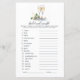 Tillsätt lite lättsam underhållning till er bröllopsfest med detta eleganta "Bröllopsordspelet" spelkort. Med en stilren champagneglas- och druvvinrankesignatur utmanar detta spel gästerna att reda ut bröllopsrelaterade ord i en kapplöpning mot klockan. Perfekt för att roa gäster och skapa glada minnen. Helt anpassningsbart för att passa er bröllopsfests tema.