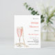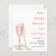En modern, snyggt och glamorös inbjudan till en Pearls- och Prosecco-Möhippa. En vit bakgrund med ett glas, flute med rosa bubblor och pärlor. Namn är skrivet med ett modernt handskript i stil. Anpassa och lägg till information om party. 1 lakan = 1 inbjudan tryckt kant till kant.