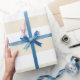 Pärlvitt och vitt brett horisontellt randigt inpackningspapper