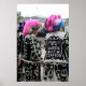 Detta pulserande foto fångas ett ögonblick på Trafalgar Square i London, med två Parly Queens i deras magnifika, handsyrade kostymer. Bilden belyser de invecklade detaljerna i deras traditionella "pärlknappar" kostym, som är försedd med hundratals knappar mor. Från de ljusa, fjädrade hattarna till de unika mönstren på deras jacka berättar varje inslag om en omhuldad Londontradition och stadens rik kulturhistoria. Denna poster är en perfekt biet för var och en som kärlek, den brittiska kulturen, det unika mode eller det historiska gatufotografiet. London, 2010.