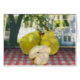Ett juiktpäron sitter på picknikens bord under den befläckade skuggan av ett träd. Originalet är en miniatyr oljemålning av Kathie Miller