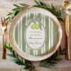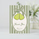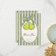 Päron-sagegröna retro-ränder baby shower tack-kort, retro oval ram handritad prickig bow päron baby shower tack-kort kort, handskrivna whimsical baby shower tack-kort, päron baby shower fest tillbehör