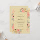 En romantisk arrangemang av mjuka persikablommor och löv pryder denna design. Den milda akvarellstilen frammanar en känsla av underdrift elegans, perfekt för en nyckfull fest. Den känsliga färgpaletten skapar en lätt och luftig atmosfär.