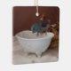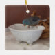 En blå parrolet sitter vid badkarets sida för att få redo till sitt dagliga bad på tillfällen.