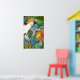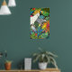 En cockatoo, Amazon, budgies, lovebird, rosella och andra parroter i tropiska bromeliadväxter av den vetenskapliga konstnären Carolyn McFann.