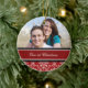För julfotoet för par daterar den 1st anpassadet för prydnaden med ditt egna foto, namn och i elegantt blom- damastast mönster för röd svartvit klassiker. En snyggt långt som dekorerar ditt julgran eller hem för helgdagar. Perfekten långt som tillsammans minns din första jul som en koppla ihop.