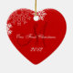 RÖD hjärtformade julprydnad. Det enkla parets beklär den första julprydnaden med fotoet på och monogramen som är initial på baksidaen med vitsnöflingor. Elke Clarke©. För nygift person och föräldrar av nyligen gift par som en minnessak av din bröllopsdag. Vitsnöflingor och och täckande musikband tillsammans med ditt bröllopfotosmink denna stilfulla design. För mer redigerande alternativ skräddarsy inklusive danande din fotopassform som är vald ", den" för redigeramenyn.