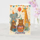Party animals celebrating a birthday. Customize number, name, message, and signature.