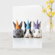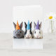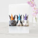 This design shows three small furry rabbits lined up side by side on a bright white background, each facing forward as if posing together 🐰. The left rabbit has soft gray fur and wears an orange cone party hat with white polka dots, giving it a sweet, inviting look. In the middle, a black-and-white rabbit wears a blue polka-dotted hat, angled slightly so it feels like it’s leaning in toward its neighbors in friendly company 🐇. On the right, a mostly white rabbit wears a purple polka-dotted hat, completing the trio with a gentle, togetherness-in-the-moment feel. Their dark, shiny eyes and tiny pink noses draw you in, and the close spacing between them suggests a cozy bond, like friends huddled for a photo. There is no background scene beyond the high, airy lighting, which highlights the fine fur texture and delicate whiskers. The white polka dots repeat across all three hats, and the purple hat sits above the right rabbit’s ears with crisp edges against the pale backdrop.
