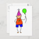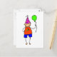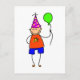 En liten tecknad pojke som åker till en födelsedagsfest med sin party-hatt och håller ballongen. Bild finns tillgänglig på olika presenter och produkter.