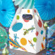 Party favour box featuring a colourful gecko design created by Alan Skyrme.