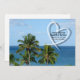 Idealisk inbjudan till par gifta sig i St Lucia som vill fira bröllop med vänner och familj hemma när de återvänder. Fin fotobild och snurra i form av ett hjärta