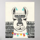 Party Llama III av Chariklia Zarris. Har ansikte i ett lama när det gäller att konstruera färg med en roligt, geometrisk bakgrund.