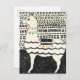 Party Llama II av Chariklia Zarris. Har ett lampa med färgstarka adsorberingar mot en roligt, geometrisk bakgrund.