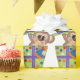 En Papper av en mönstrad Baby-apa som sticker ut från färgfullt Presenter.