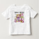 En liten prinsessa som bär krona omgiven av dina födelsedagstrakter, ballonger och ljus på Party Princess 4e födelsedagen T-shirts, bibs, kort, tote bags med mera.
