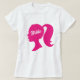 Den här roligt rosa-bachelorette T-shirt är accentuerad med ett anpassade, ljussilhuett av rosa med en flicka med en pony svan, skapar perfekt för en Barbiecore Party! Om det behövs ytterligare samordningsposter kan du bara kontakta oss med din begäran på prettyfancyinvites@gmail.com.