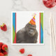 Den fina födelsedagsfesten i party har ett foto av en gorilla. Gorillan har en party hatt på huvudet med orange, gult och lila rand. Djurgorillan i party på födelsedagshatten är på vit bakgrund med en trim av ribbon rand i rött, blått, grönt, orange och gult. Att matcha Party som en djurgorilla med Party Hat Födelsedagsfest inbjudan och pappert tallrikar finns också tillgängligt.