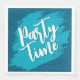Havsblåa blöjor med en abstrakt penseldrag i söt azure färg. Över penseldraget är "Party-tiden" i ord i ett vitt skript som har en blå skugga. Enkel men perfekt för alla firande bord.