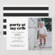 Den här roligtens första födelsedag-inbjudan innehåller ord "party vid min hals" i svart på vit bakgrund. Den har plats för ett enda foto på högerna med utrymme för all information om party på den lämnat sidan. På baksidan finns en färg som samordnar mönster i svart och vitt.