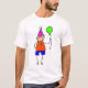 Gullig nyckfull illustration av lite en tecknadpojke som går till en födelsedagsfest som ha på sig hans partyhatt och innehav hans ballong. Avbilda tillgängligt på olika gåvor och produkter.