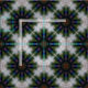 En explosion av geometriskt bildar i kaleidoscopestilavbrott och snurrande i grönt, blått som är röda som är rosa som är gula och aqua.