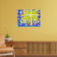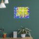 Modern påsk abstrakt uppståndelsekors vattenkonst. Denna ljusa och livfulla korsdesign firar Jesu uppståndelse. Det gyllene gula korset skapar en livfull stjärnexplosion av ljusa färger mot en blå, lila och mauve bakgrund. Kristet religiöst samtida originalkonst av konstnären Catherine Sweetman