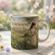 Fira vårens sötma med denna ömma barnmugg som visar en ung flicka som håller en mjuk brun kanin i en blommande äng. Scenen är fylld med tusenskönor, vivor och pastellfärgade blommor och fångar påskens glädje och förnyelse i en mjuk, saga-liknande stil. Perfekt för morgoncacao, påskkorgar, vårfödelsedagar eller som en souvenir som blir en del av ett barns käraste minnen. Designad med den mjuka, filmiska värmen som kännetecknar GentleMuse Studio.