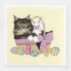 Tvättbord med lång hårkattunge sitta i Påsk Basket med en rosa och en fylld Påskhare. Påskägg runt basket.