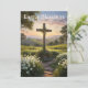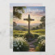Ett vackert illustrerat Påsk-kort med en traditionell bild av ett kor på backe, omgiven av blommor och en serenlandskap. Ett perfekt sätt att Påsk, tro och förnyelse med närstående.