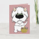 Påsk Bone Hunt, någon? Lönsam Big Nose Väster Highland White Terrier med en balanserad behandling på näsan och en basket fullt ben bredvid honom på ett hälsningskort, redo att gå till benjakt i Påsk.