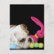 Påsk Bulldog-hundvalpen upptagen munchning på påskägg