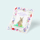 Äggjakt på Påskhare med färglösa vattenfärger och budgetinbjudan till brunch blommigt vår party. En god kanin med tre Påskägg och en vacker boho-vildblomskål, inklusive kornblommor och trädgårdsblommor. Enkel att anpassa lila moderna handskriftsskript så att du kan lägga till all party-information. Originalkonstverk av konstnären Catherine Sweetman