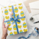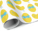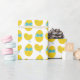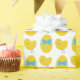 Cute gult mönster i Påskägg som är bundna med en blå bugg och baby-kycklingar.