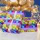 Denna glupska pappra omslutning har skarpa band av briljant färgad chokladförpackade Påskägg, mot bakgrund av sötens lila. Perfekt för att slå in de speciella Påsk-armarna!