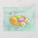 Det här vackra vykortet med färgad Påskägg i ett fågelbo för Vår skönhet till helgdag. Ett underbart sätt att önska alla "Glad påsk". Originaldesign och teckningar av Audrey Ascenzo. Framsida: Glad påsk