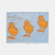 En vintage / ett antika Glad påsk-vykort med tre fuzzy gult kände chickar i rad. Bakgrund i blått. Glad påsk!