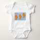 En vintage / ett antika Glad påsk-vykort med tre fuzzy gult kände chickar i rad. Bakgrund i blått. Glad påsk!