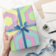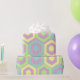 Denna papper har en geometrisk utformning av hexagoner i blekens blått, blekens gult och blekens grönt på fält i rand i blek och rosa av blek och lila.