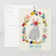 Påsk kaninbunny grått blommigt teckning vykort