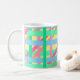 Mugg har en Påsk-utformning av lodrät, vågrät och diagonalt linjer som passerar formgivningen i blek Påsk färg.