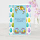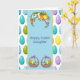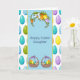 Påsk kort till din dotter, med lite humor. Utformningen är för det mesta blå och vit med ägg från färgaden, Påsk basket och Blommor. Tack vare Kreativet Fabrica för en del av inslag i designen.