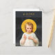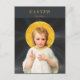 Påsk hälsningskort inspirerad av ett vackert bild av Kristus barn av Fransk målare Émile Munier (Jesus, slutet av 1800-talet). I detta känsliga överlämnande av barnet Jesus visar Munier sin förmåga att fånga det centrala i barndomen. Barnet Jesus ser ut som en skön bit ut ur bild med sin hand i den ikoniska gest av välsignelse och förlåtelse. Hans ömtåliga blonhalm skapar en naturlig halo i den gyllene som adorerar hans huvud.. Paletten är fastspänd och bakgrunden är mörk och enkel. Den framstående användan av vitt och guld understryker barnets mångfald, medan det vackra utgivandet av Jesus ansikte understryker hans mänsklighet.